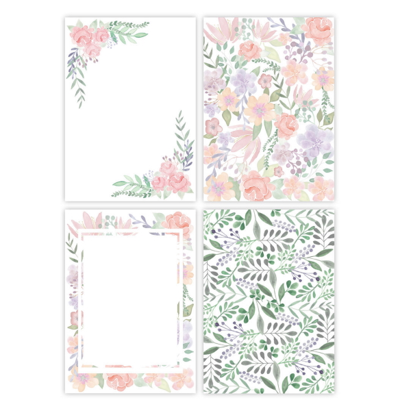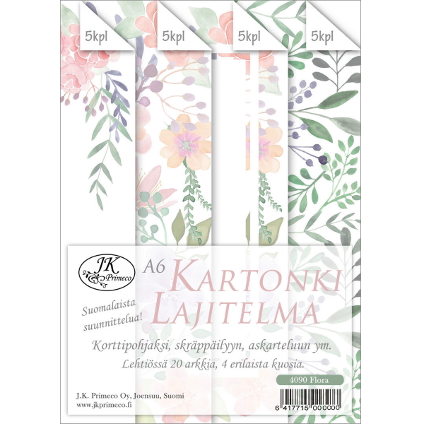 A6-kokoisessa kartonkilajitelmassa on 4 erilaista kuosia, jotka sopivat vaikka korttipohjiksi.