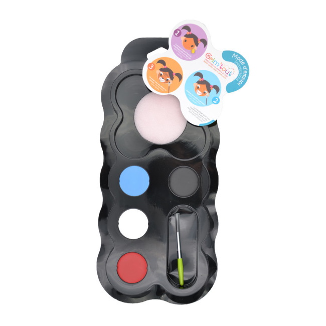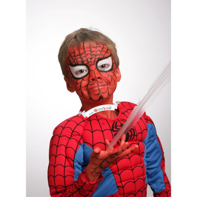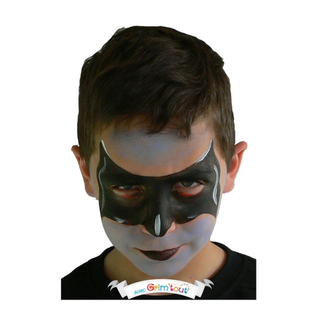 Muutamalla siveltimenvedolla sinusta voi tulla supersankari! Siinä piilee tämän paletin supervoima ;) Yhteensä 12 ml:n sinisen, mustan, punaisen ja valkoisen värien ansiosta sinusta voi tulla Hämähäkkimies, Batman, Rautamies... Mukana on myös sieni pohjavärejä varten ja sivellin yksityiskohtia varten. Tämän meikin toinen supervoima on, että se on helppo poistaa saippualla ja vedellä!