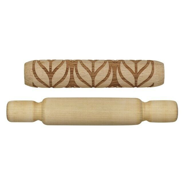 Kuviollinen kaulin on 13 cm pitkä ja Ø2 cm. Kuvio koostuu suurista lehdistä, joista tulee kaunis kuvio keraamisiin esineisiin, kuten maljakoihin, koristeisiin, kulhoihin ja kaikkeen muuhun mitä haluat luoda.