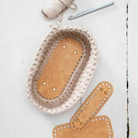 Laukkupohjat rei'itetyillä reunoilla. Pohjat on valmistettu tekonahasta/PU-nahasta, joka todella muistuttaa aitoa nahkaa. Näihin laukkupohjiin on helppo virkata laukkuja, lankapusseja ja erilaisia säilytysratkaisuja kotiisi.