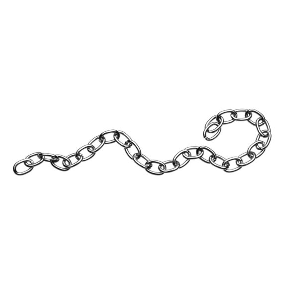 Ketju, metallia. Leveys 5 mm. Pituus 1 metri. Hopeanvärinen.