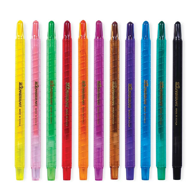 Erittäin pehmeä jälki ja kirkkaat värit. Värejä on helppo sekoittaa uusiksi sävyiksi päällekkäisillä kerroksilla. Kierreliituja nimensä mukaisesti kierretään päästä aina, kun liitu on kulunut ja sitä tarvitaan lisää. Kädet pysyvät puhtaina muovisen varren ansiosta.