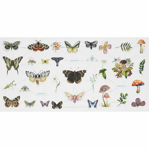 Kiitokuvia arkilla, 3 kpl. Jokainen arkki on kooltaan 16,5 × 23,5 cm. Pakkaus sisältää kolme arkkia, joissa on paljon yksityiskohtaisia ja värikkäitä perhosia kauniissa kevättanssissa. Kiiltokuvat on painettu kiiltävälle paperille ja kuvat on kiinnitetty toisiinsa. Käytä pieniä saksia tai, jos olet aikuinen, leikkaa askarteluveitsellä / taittoveitsellä.