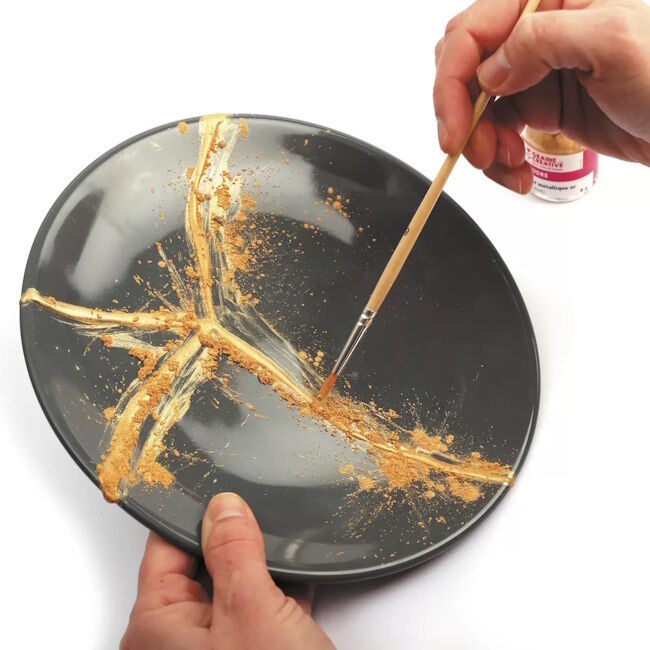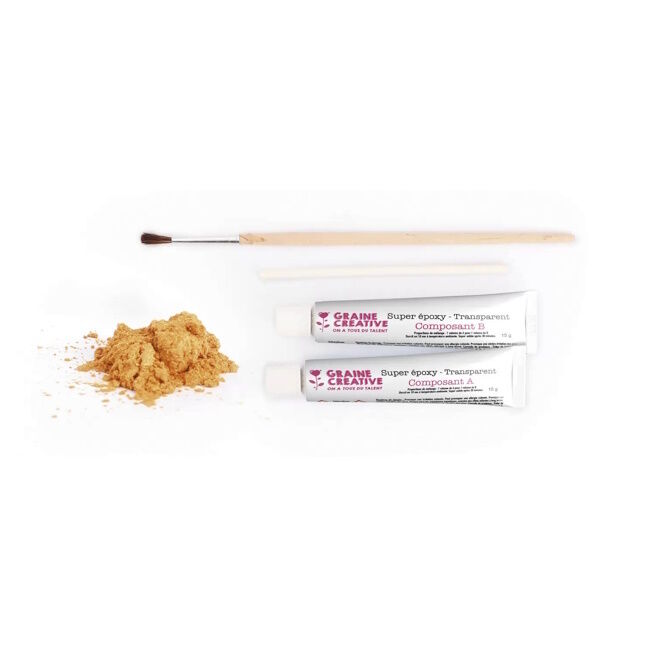 Tämän sarjan avulla voit kokeilla tätä tekniikkaa epoksihartsilla ja kultajauheella.