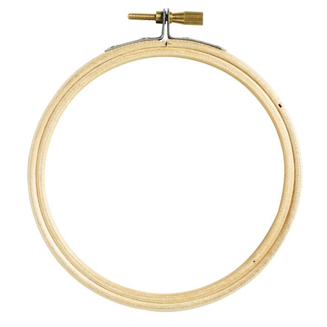 Pyöreä, puinen, metallilukituksella. Toimii sekä kankaan kiristyskehyksenä että valmiin, kirjotun tai maalatun työn kehyksenä. Apuväline joka pitää kirjottavan kankaan pingotettuna.