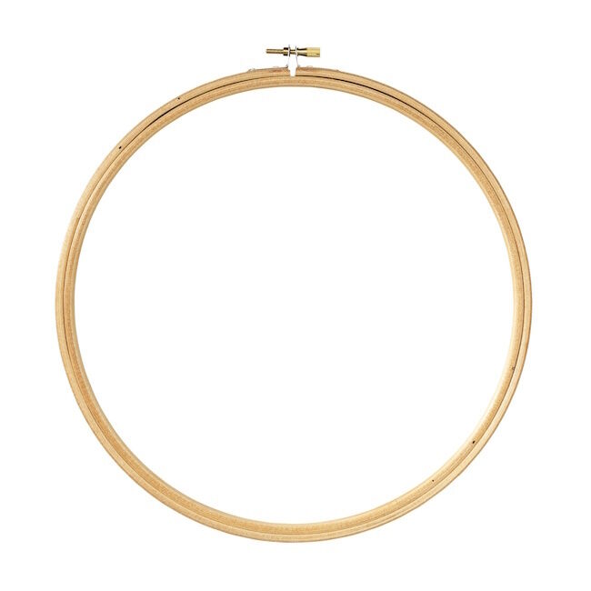 Pyöreä, puinen, metallilukituksella. Toimii sekä kankaan kiristyskehyksenä että valmiin, kirjotun tai maalatun työn kehyksenä. Apuväline joka pitää kirjottavan kankaan pingotettuna.