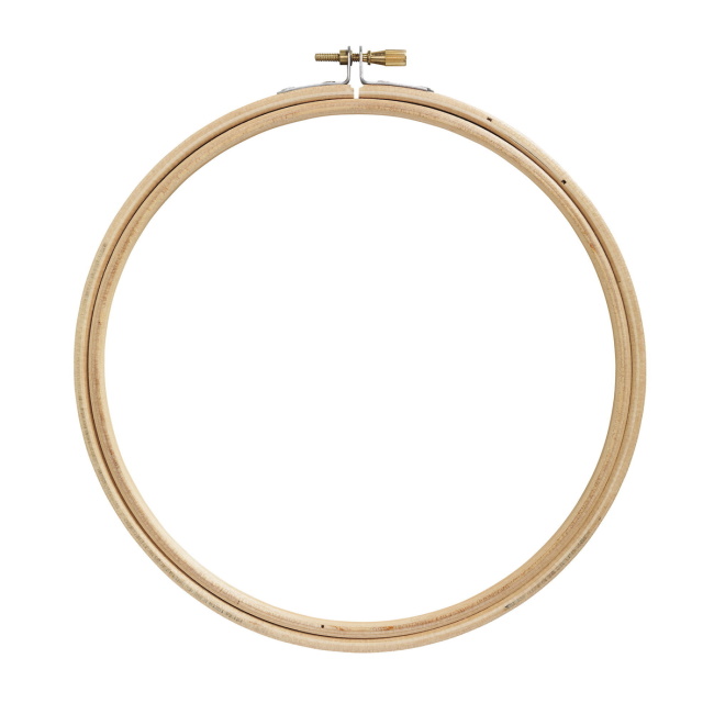 Pyöreä, puinen, metallilukituksella. Toimii sekä kankaan kiristyskehyksenä että valmiin, kirjotun tai maalatun työn kehyksenä. Apuväline joka pitää kirjottavan kankaan pingotettuna.