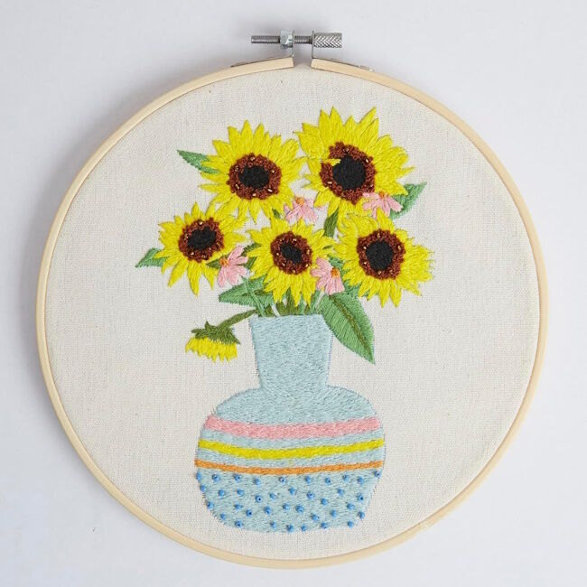 Kirjontasetti Auringonkukat