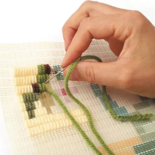 Löydä kirjonnan ilo uudelleen pitkäommeltekniikalla, moderneilla, värikkäillä kuvioilla ja alkuperäisellä esityksellä. Sarja sisältää kaiken mitä tarvitset, mukaan lukien puinen keppi seinäkoristeen viimeistelyyn. Mitat 30x40 cm