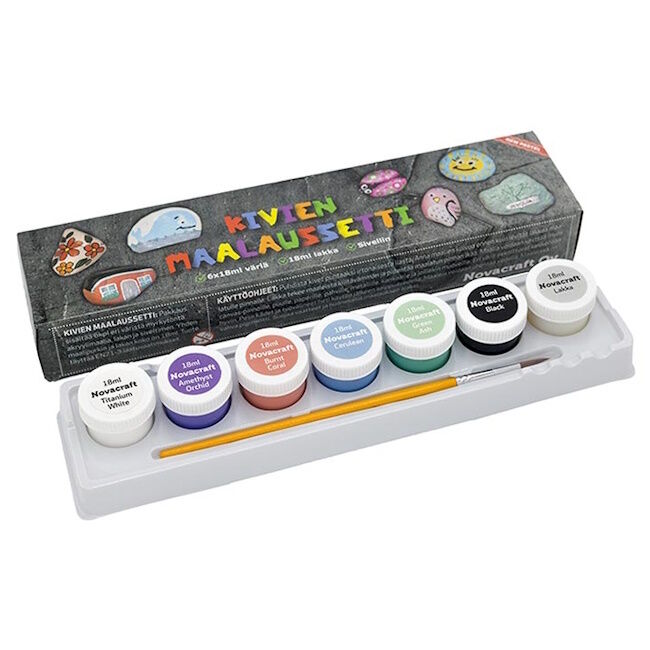 Täydellinen pakkaus kivien maalaukseen.