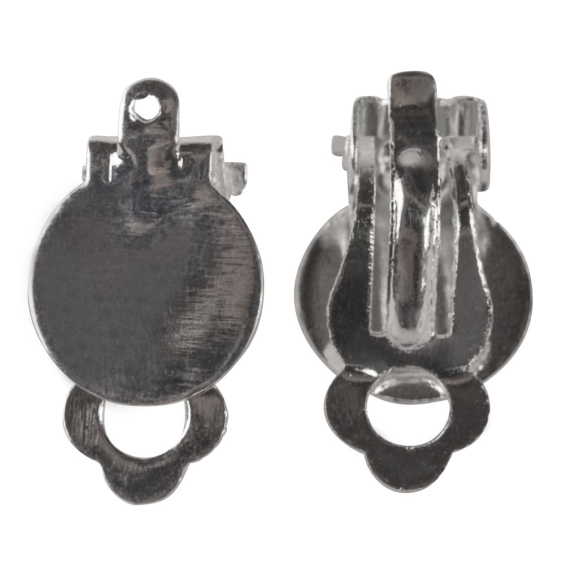 Klipsikorvakorut silmukalla, valmistettu korumetallista. Platinan värinen. 2 paria.
