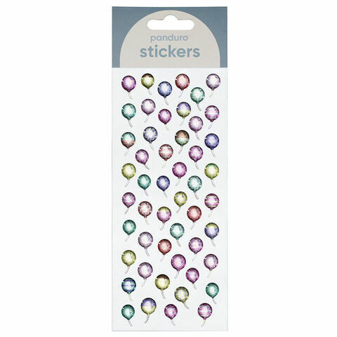 Hohtavia ja kimaltelevia pehmotarroja, joissa on paljon Ø1 cm ilmapalloja naruissa. Kaikki tarrat ovat noin 1 mm paksuja. Tarrat on kiinnitetty muovilevyyn, jonka koko on 7,5 × 17 cm.
