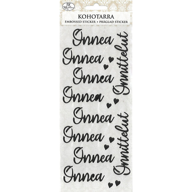 Kohotarrat askarteluun ja koristeluun. Pakkaus sisältää yhden arkin muovisia kohotarroja.