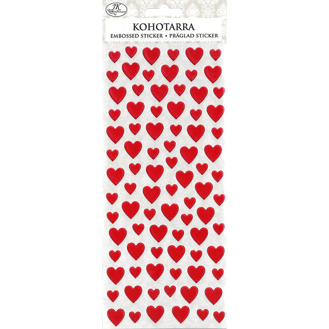 Kohotarrat askarteluun ja koristeluun. Pakkaus sisältää yhden arkin muovisia kohotarroja.