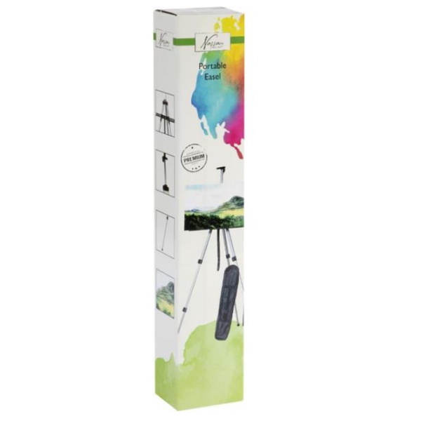 Alumiininen maalausteline. Mukana kantolaukku johon taittelet maalaustelineen helposti mukana kuljetettavaksi.