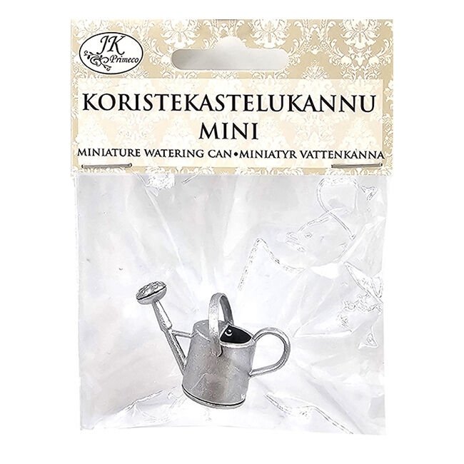 Koristekastelukannu koristeluun ja minimaailman rakentamiseen. Pakkaus sisältää yhden metallisen kastelukannun.
