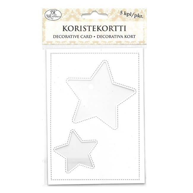 Pakkauksessa on 5 koristekorttia, yhden kortin koko: 14,8 x 10,5cm.