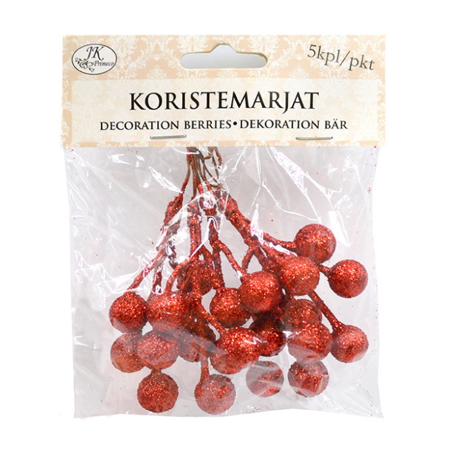 | Koristemarjat punainen glitter 5kpl | ||||