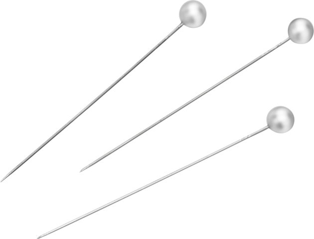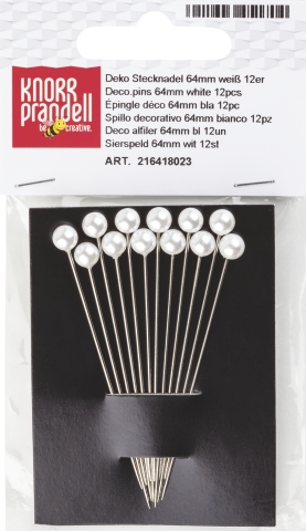 Pitkät nuppineulat esim. kranssiaskarteluun. Neulan pituus 6,4cm. 12 kpl.