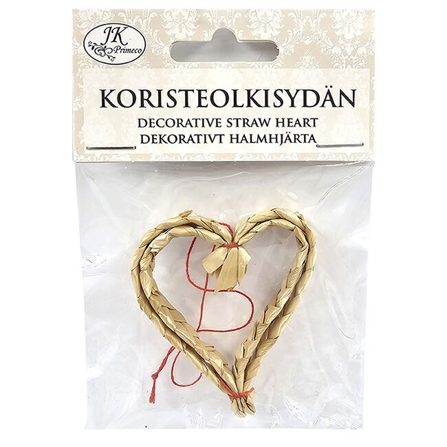 Koristeolkisydän mini koristeluun ja minimaailman rakentamiseen. Pakkaus sisältää yhden olkisen sydämen.
