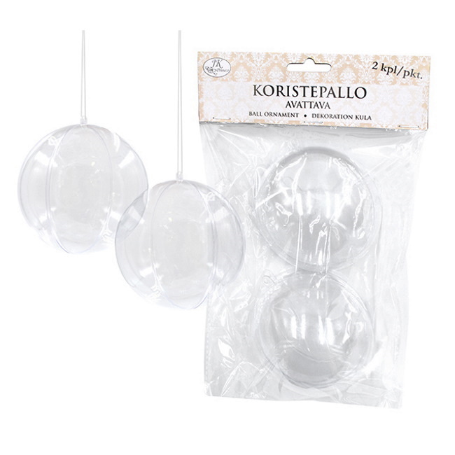 Kaksiosaiset, kirkkaat koristepallot askarteluun, koristeluun ja sisustukseen.