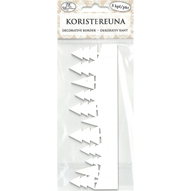 Koristereuna askarteluun ja koristeluun. Pakkaus sisältää viisi kappaletta kartonkisia kuvioita, joissa on laserleikattu kuviointi.