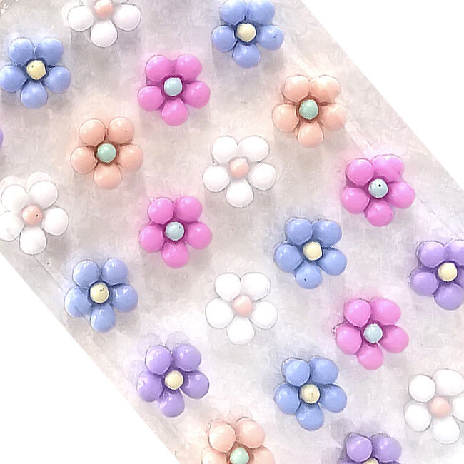 Koristetarrat askarteluun ja koristeluun. Pakkaus sisältää 24 kappaletta kukan muotoisia tarroja viidessä eri värissä.