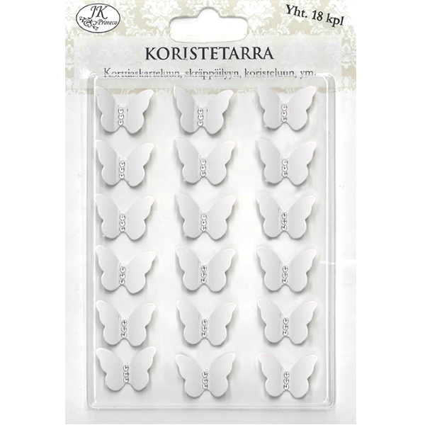 Pakkauksessa on 18 kappaletta perhosia, joissa on tarra kiinnitys keskellä, jolloin siivet ovat 3D-maisesti koholla.
