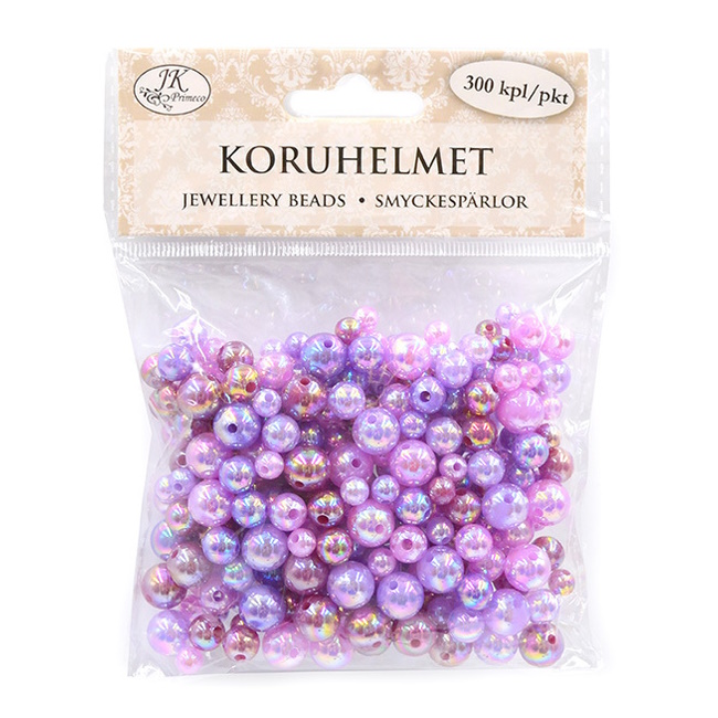 Pakkauksessa 300 koruhelmeä, helmien koko n. 6-10mm.