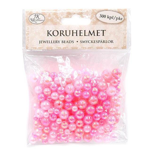 Pakkauksessa 300 koruhelmeä, helmien koko n. 6-10mm.