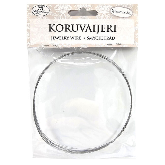 Nikkelitön koruvaijeri koruaskarteluun. Pakkaus sisältää viisi metriä metallista koruvaijeria, jonka paksuus on n. 0,2mm.