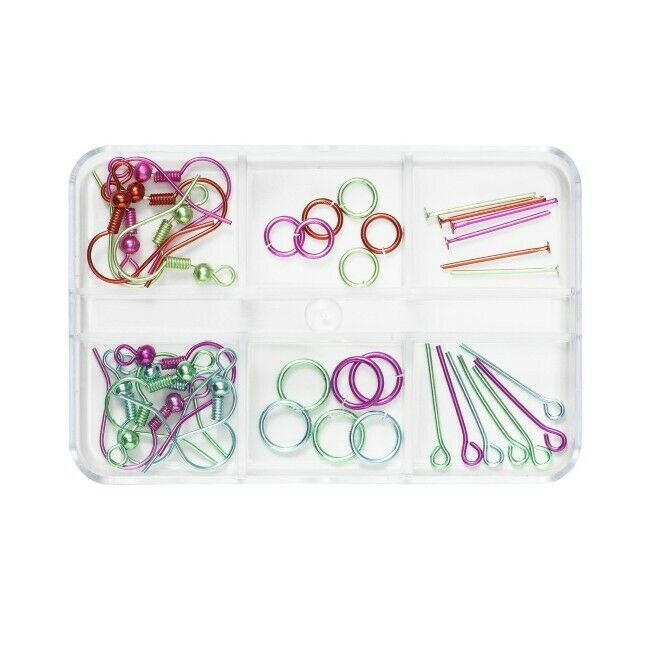 Metallinväriset korvakorukoukut ja osat korujen valmistukseen, loistava alku niille, jotka haluavat luoda omia korvakoruja. Pakkaus sisältää 12 korvakorukoukkua, 6 isoa välirengasta, 6 pientä välirengasta, 6 silmukkapiikkiä ja 6 korupiikkiä. Kaikki osat on valmistettu metallista.