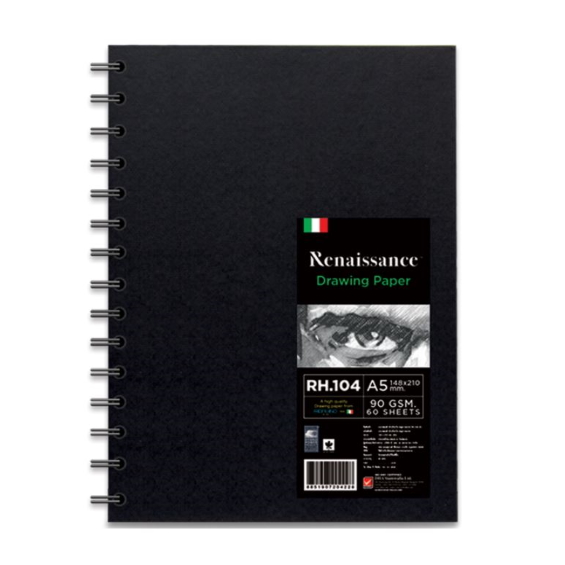 Renaissance kovakantinen piirustus- ja luonnostelulehtiö luonnonvalkoisella paperilla (90 g). Laadukas italialainen paperi on happovapaata, FSC-sertifioitua ja valmistettu 100 % selluloosasta. Lisäksi paperi säilyy pitkään, ei homehdu eikä kellastu.