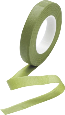 Kukkateippi, josta tulee liimautuvuus esiin teippiä vähän venyttämällä. Leveys 13mm. Rullassa 27m.