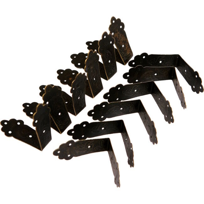 Metallliset kulmaraudat, pronssinväriset. Koko 43 x 20 mm, 12 kpl.