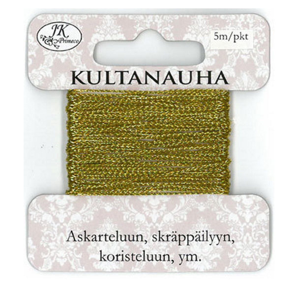 Ohut kultanauha askarteluun ja koristeluun. Sopii erityisesti koristeiden ripustuslangaksi.