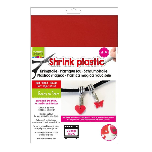 Tämä pakkaus sisältää: 4 kutistemuoviarkkia (A4). Tarvitset: tavallisen uunin, permanent tussit tai leimasinmusteen ja sakset.