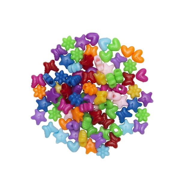 Akryyliset kuviohelmet (tähdet, perhoset, sydämet jne.) Akryylia kuudessa eri värissä: keltainen, oranssi, vaaleanpunainen, cerise, violetti ja sininen. Koko n. Ø 13 mm, reikä 3 mm, paksuus 7 mm. Pakkaus 226 g, noin 600 kpl. Kirkkaat värit.