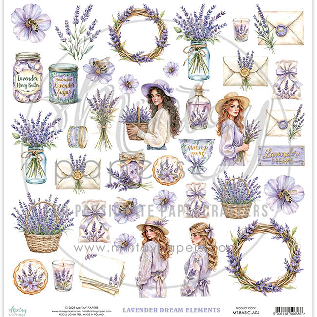 | Kuviokartonkiarkki Elements Lavender Dream - Mintay Papers | ||||