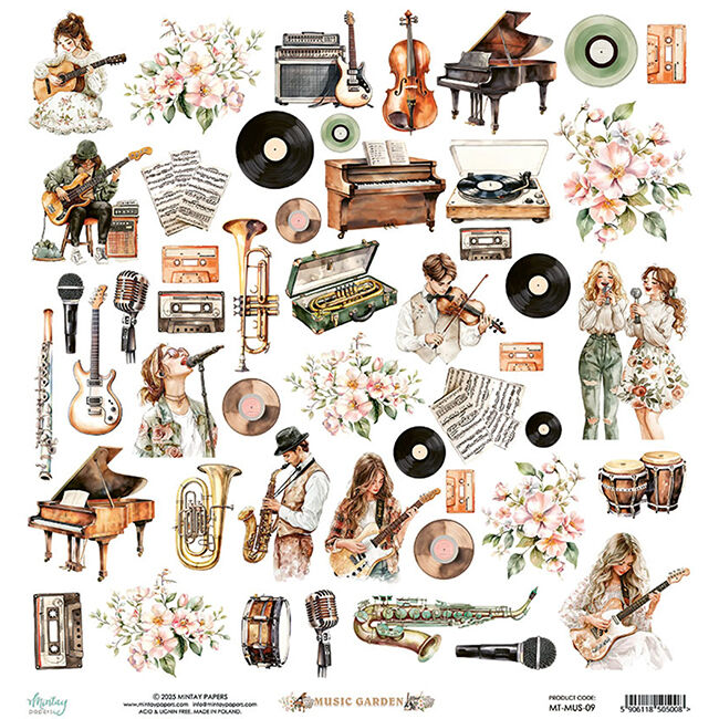 | Kuviokartonkiarkki Elements Music Garden - Mintay Papers | ||||