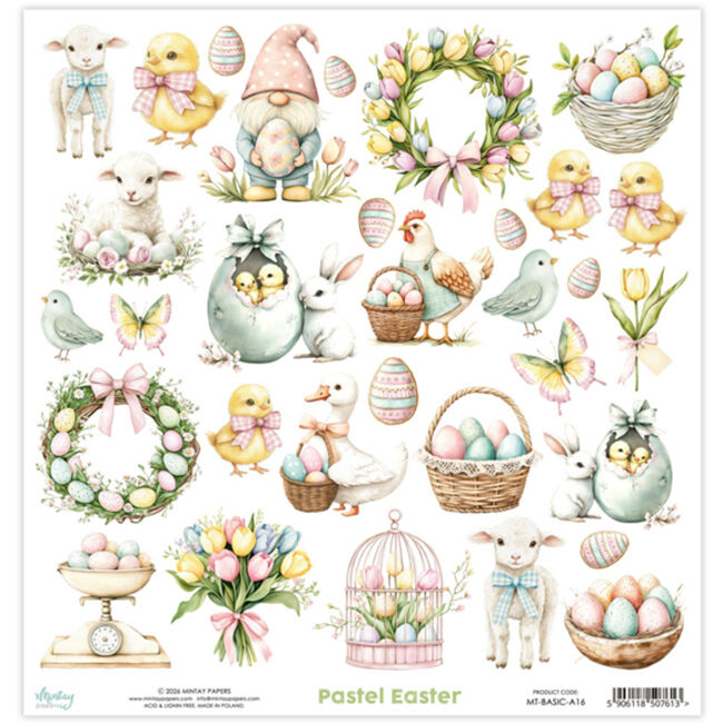 Kuviokartonkiarkki Pastel Easter Elements - Mintay Papers
