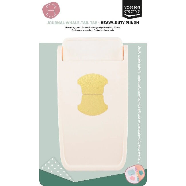 Kestävä Journal Tab -lävistäjä on tehokas harrastustyökalu, joka lävistää pyöristettyjä tabeja erilaisista (paksuista) askartelumateriaaleista. Vahva lävistin soveltuu käytettäväksi erilaisten papereiden (min. 120 - max. 450 grammaa), korkkien, kutistekalvojen, PVC:n (max. 0,6 mm), vaahtomuovien (max. 2 mm), balsapuun (max. . 1 mm), ohut metalli (max. 0,1 mm) ja paljon muuta. Käytä ylimääräistä paperiarkkia vaahtokumia lävisttäessäsi.