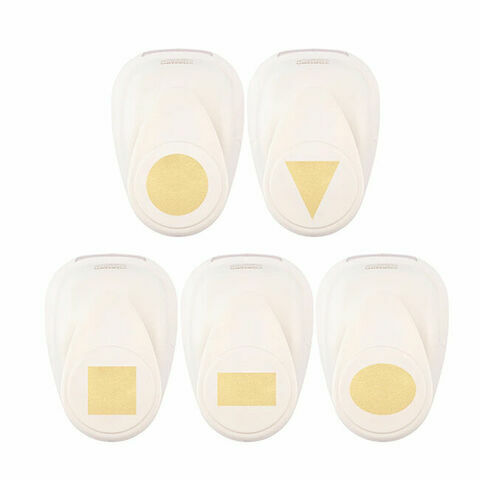Kaikki viisi leikkuria ovat samankokoisia. Ne sopivat 90–250 gsm:n paperille ja toimivat myös scrapbooking-paperin, decoupage-paperin ja ohuen vaahtomuovin ja korkkilevyn kanssa.