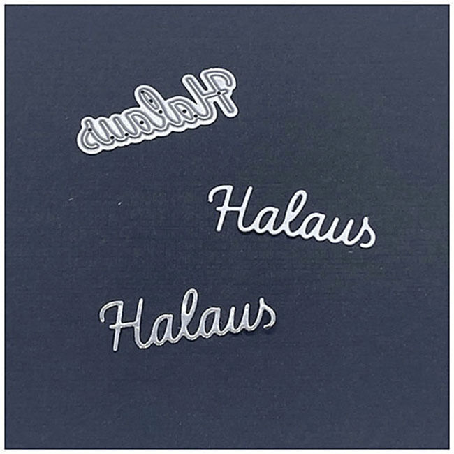 Yksi suomenkielinen tekstistanssi, ohutta metallia. Koko n. 4,1 x 1,6 cm.