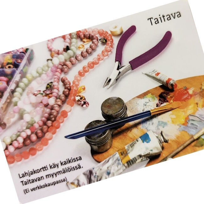 Asiakkaalle lähetettävä fyysinen lahjakortti joka käy maksuvälineenä kaikissa myymälöissämme. Valitse haluamasi summa lahjakortille alasvetovalikosta.