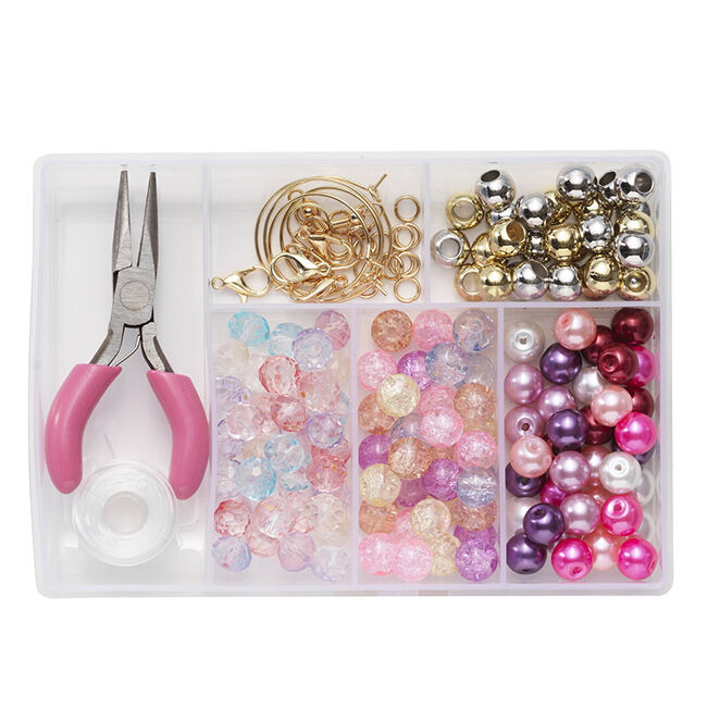 Setti, jossa kaikki tarvittava korvakorujen ja rannekorujen luomiseen!