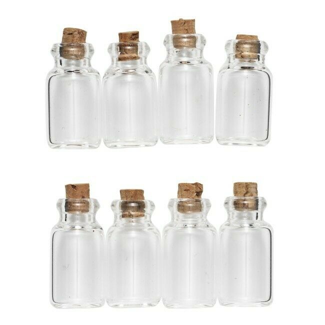 Miniatyyrilasipullot – 8 kpl. pienet lasipullot, joissa on korkkikorkki. Korkeus 25 mm.