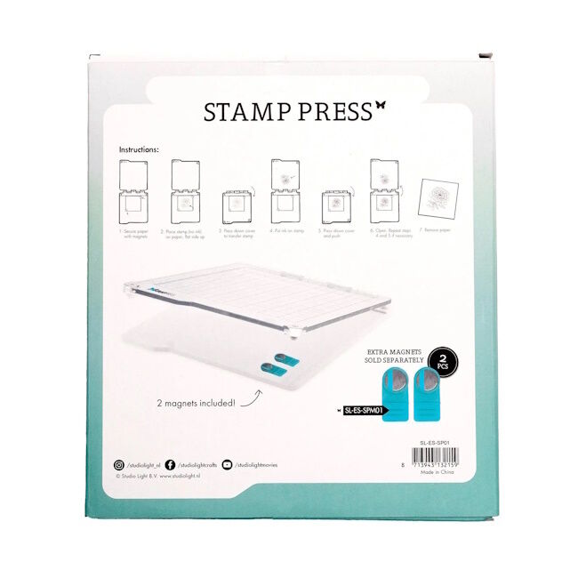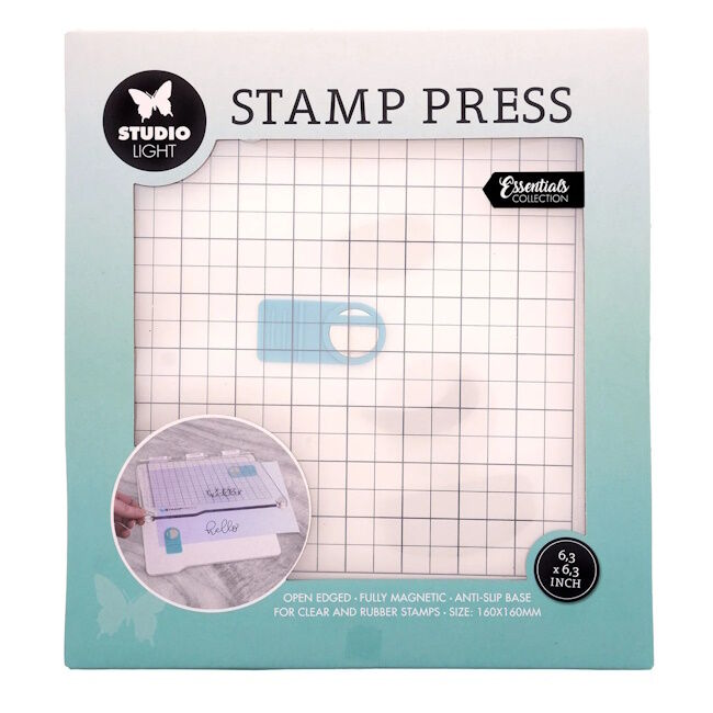 Silikonileimasin kiinnitetään työkalun läpinäkyvään kanteen, leimattava korttipohja/paperi pidetään paikoillaan kahden magneetin avulla. Näin saat kohdistettua leiman oikeaan kohtaan.