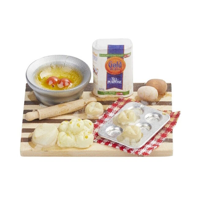 Miniatyyri leivontasetti, koko 5 x 3,8 x 2,3 cm.