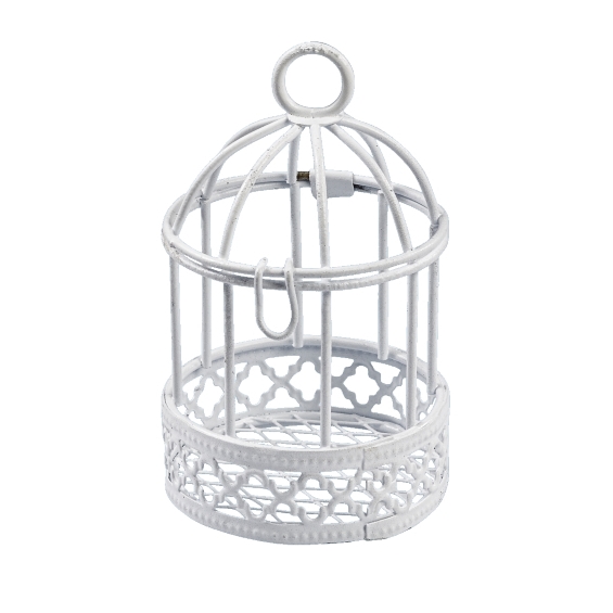 Kaunis metallinen lintuhäkki. Koko 8 x 5 cm.
